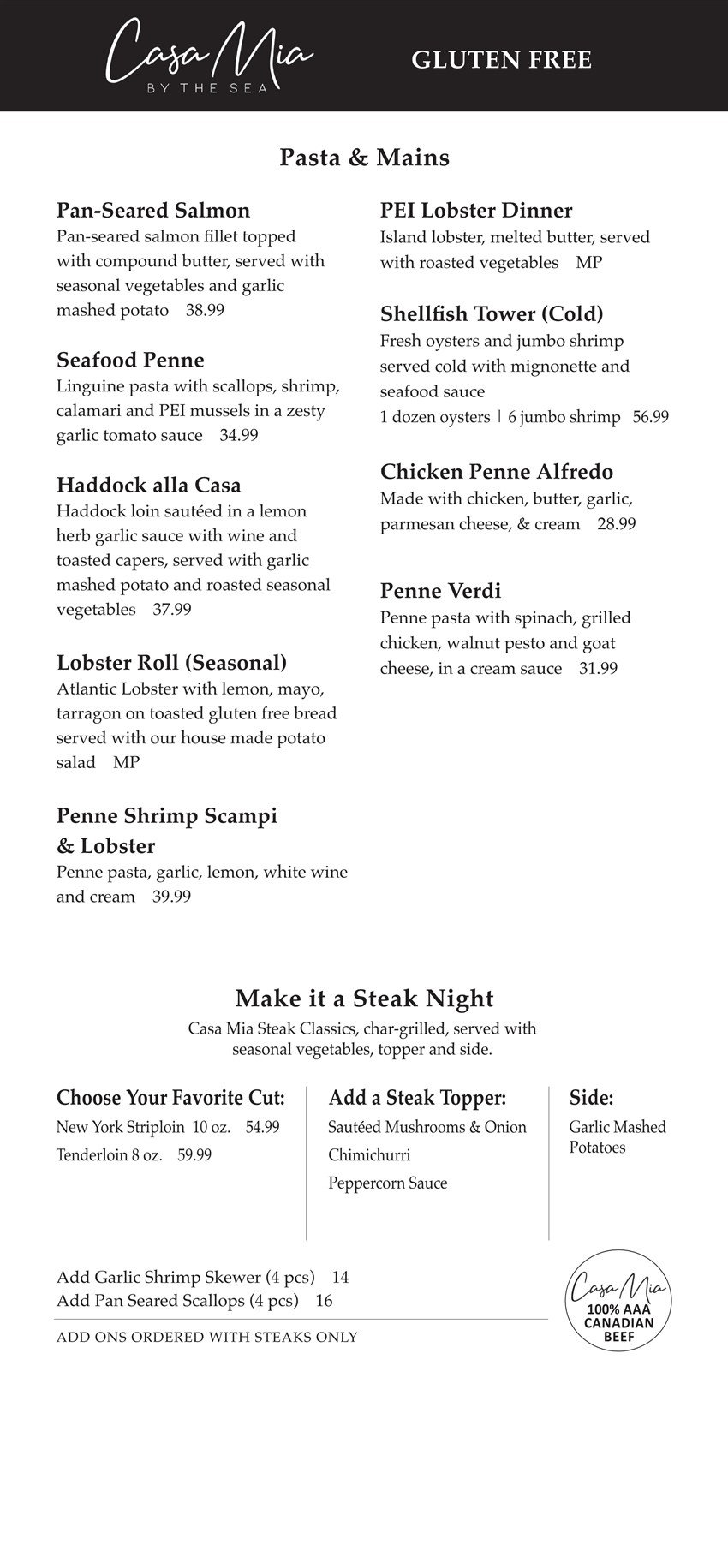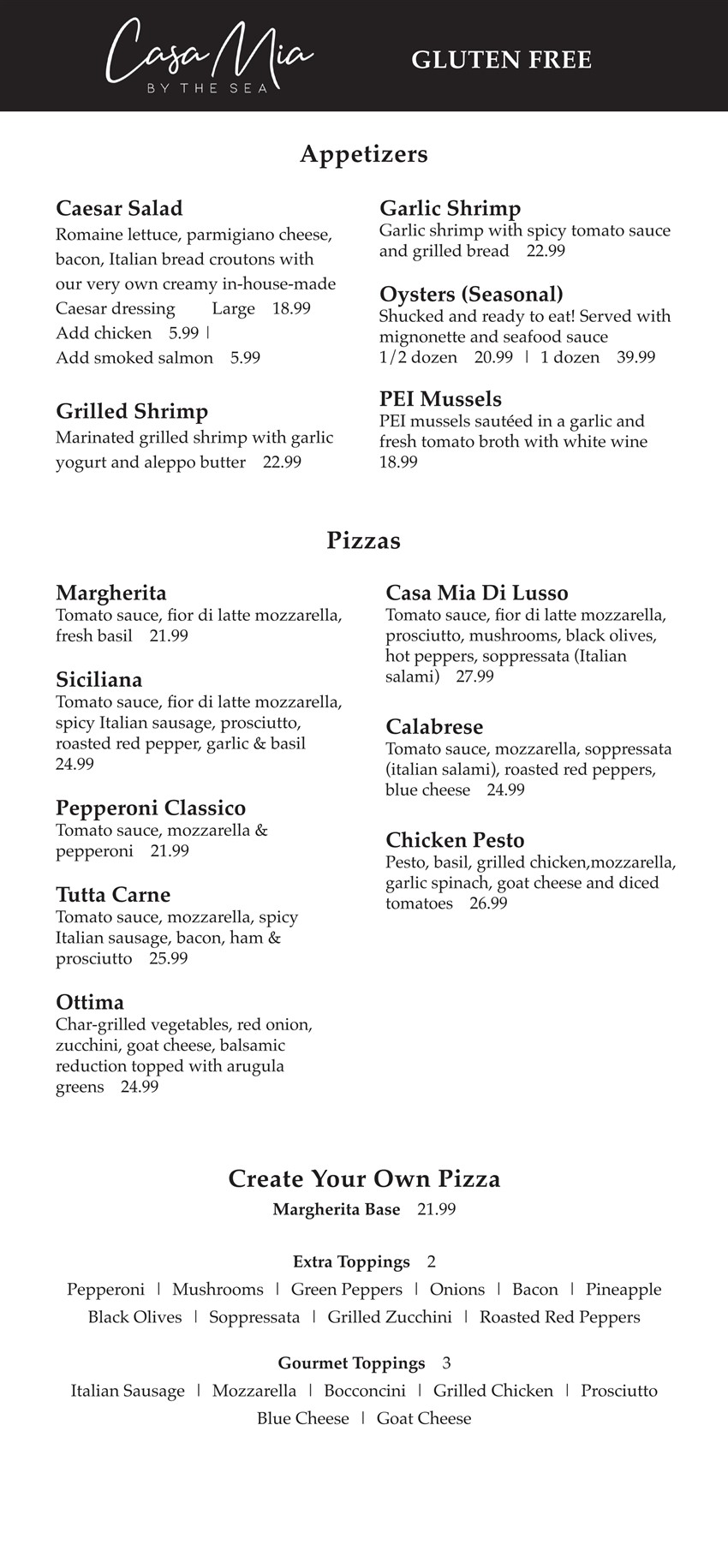 Gluten Free Menu